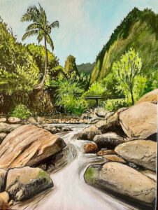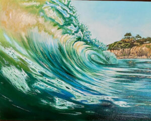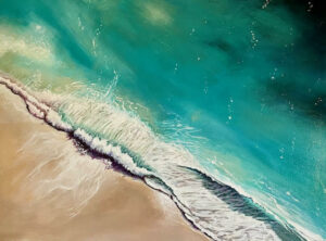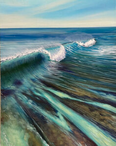 The artist hopes viewers will find a sense of escape in the work — perhaps recalling a favorite coastline, a memory of the sea, or simply enjoying the color and energy of the painting.