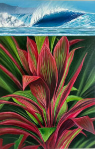 Working in acrylic on canvas and wood, Mike creates vibrant, colorful paintings inspired by the ocean, coastal landscapes, and botanicals. Focusing on the ocean has become especially meaningful in recent years. As a recent stage 4 cancer survivor, painting has served as a form of therapy — a way to stay connected to the water during three years sidelined from surfing. The ocean remains both subject and solace, bringing joy and grounding to each piece.